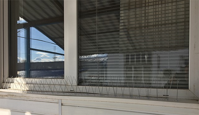 Металлические шипы, которые устанавливаются на поверхность, облюбованную птицами, создают физические помехи для их размещения. Такой вариант отпугивания относится к наиболее гуманным — он не ранит, не пугает пернатых. Им просто негде приземлиться.
