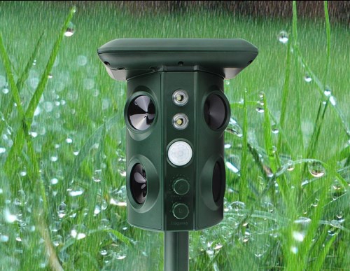 - Комбинированным воздействием. Сочетание ультразвука со световым эффектом и вибрацией позволяет защитить территорию практически от всех мелких и крупных животных;